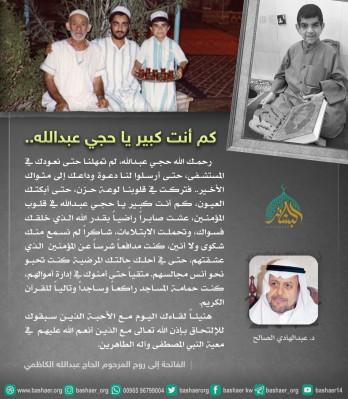 ![]() رحمك الله حجي عبدالله، لم تمهلنا حتى نعودك في المستشفى، حتى أرسلوا لنا دعوة وداعك إلى مثواك الأخير.. فتركت في قلوبنا لوعة حزن، حتى بكتك العيون.. كم أنت كبير يا حجي عبدالله في قلوب المؤمنين، عشت صابراً راضياً بقدر الله الذي خلقك فسواك، وتحملت الابتلاءات، شاكراً لم نسمع منك شكوى ولا أنين.. كنت مدافعاً شرساً عن المؤمنين الذي عشقتهم، وحتى في أحلك حالتك المرضية كنت تحبو نحو أنس مجالسهم.. متقياً حتى أمنوك في إدارة أموالهم، كنت حمامة المساجد راكعاً وساجداً وتالياً للقرآن الكريم.. هنيئاً لقاءك اليوم مع الأحبة الذين سبقوك للإلتحاق بإذن الله تعالى مع الذين أنعم الله عليهم في معية النبي المصطفى وآله الطاهرين.. الفاتحة لروح الحبيب المرحوم الحاج عبدالله الكاظمي. التعليقات المنشورة لا تعبر بالضرورة عن رأي الموقعالتعليقات «0» لاتوجد تعليقات!